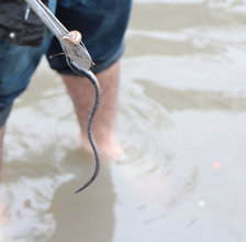 VATANDAŞ ELİNDE MAŞAYLA SUDAN YILAN TOPLADI