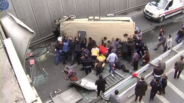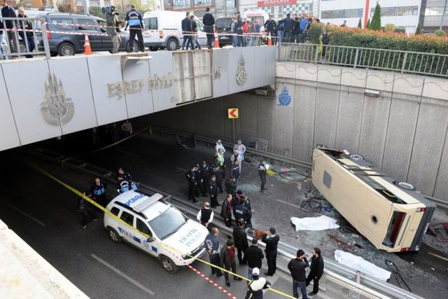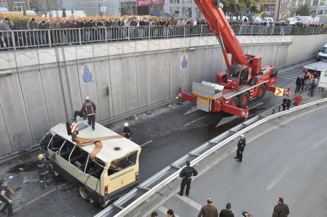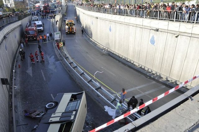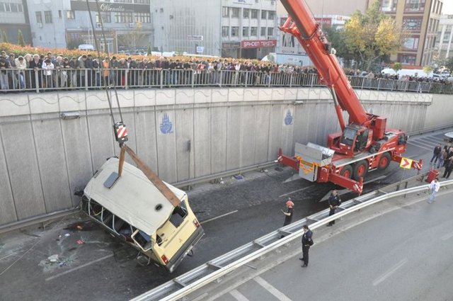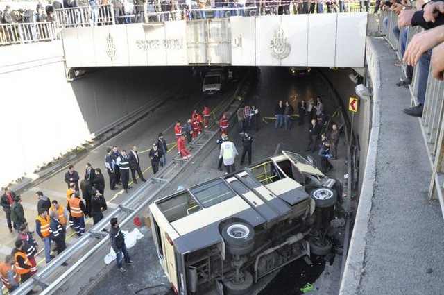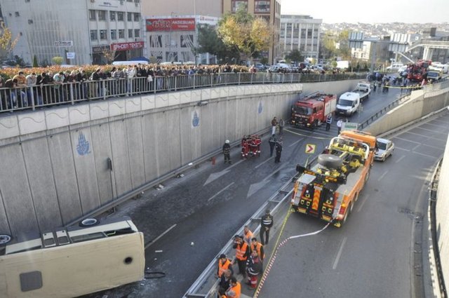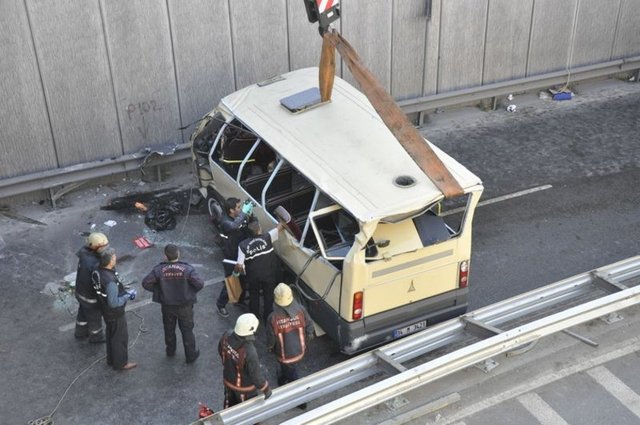 Güngören'de yolcu taşıyan bir minibüs, sürücünün direksiyon hakimiyetini kaybetmesi sonucu 15 metre yükseklikteki Eşref Bitlis Üstgeçidi'nden aşağı düştü. Kazada 2 kişi hayatını kaybetti, aralarında sürücünün de bulunduğu 2 kişi de yaralandı.