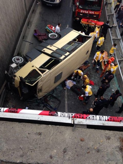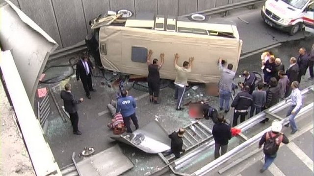 İstanbul'da minibüs köprüden uçtu