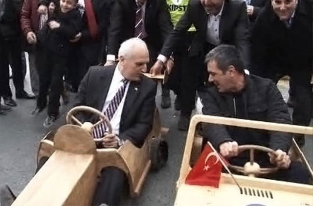 Vali Mutlu'nun konuşmasının ardından Eyüp Belediye Başkanı İsmail Kavuncu ve Ak Parti Milletvekili Osman Aşkın tahta arabalarla yarıştı. Vali Mutlu, yarışta birinciliği elde etti.