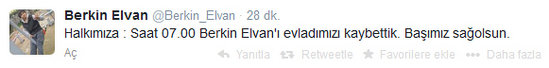 Gürkan Korkmaz: Berkin Elvan'ın ailesi saat 07:00 itibariyle Berkin'in hayatını kaybettiği haberini veriyor. Başımız sağolsun. Başımız sağolsun!