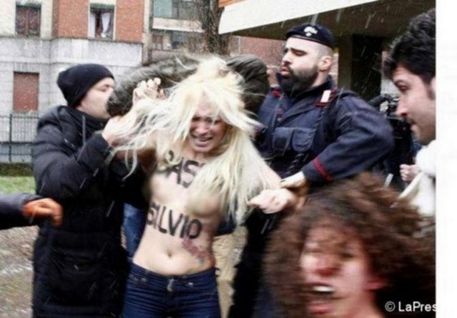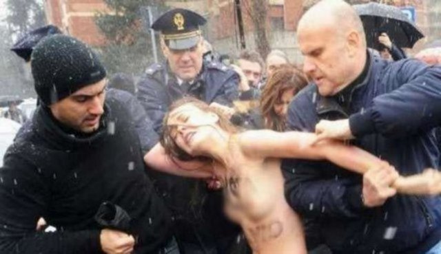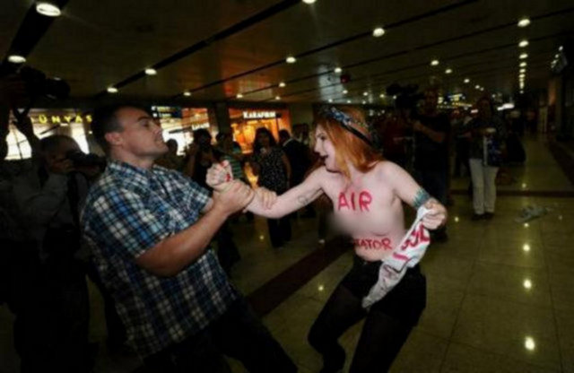 Femen üyeleri İstanbul’un muhafazakar semtlerinden Üsküdar'da eylem yaptı. Femen üyeleri oy pusulalarının bulunduğu masaya çıkıp göğüslerini açarak slogan attı. İki eylemci sandık merkezinde görevli polisler tarafından gözaltına alındı.