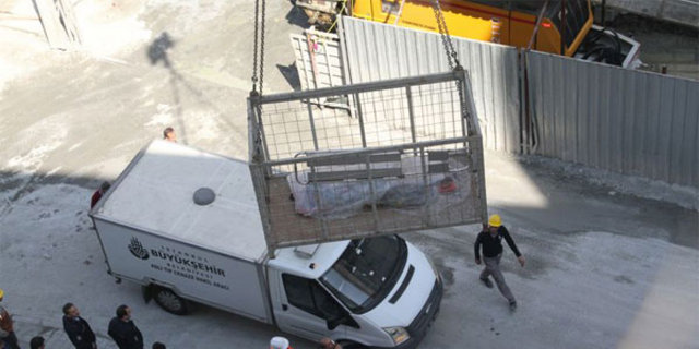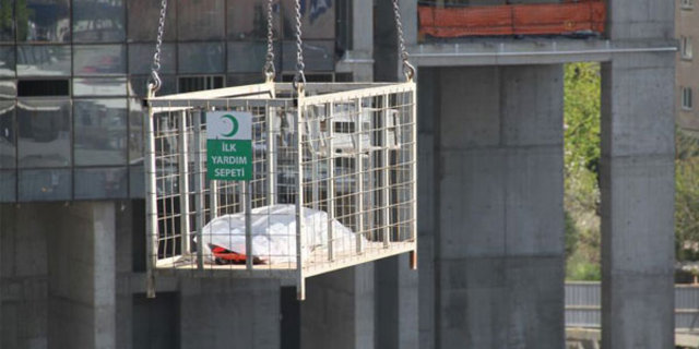Yapılan incelemeler ardından Erdoğan Polat'ın cenazesi, yine bir inşaat sepetine konularak düştüğü yerden çıkartıldı.