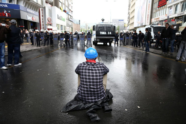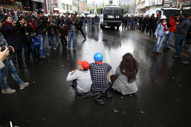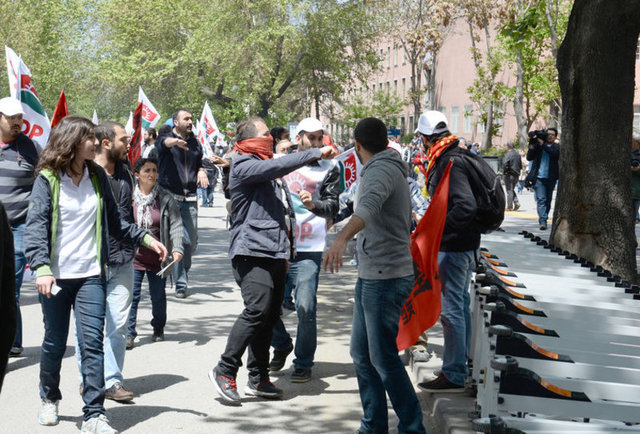 Ankara Kızılay Meydanı'nda 1 Mayıs kutlaması yapmak isteyen iki bayan eylemci Güven Park önünde pankart açtı. Bağımsız Devrimci Sınıf Platformu adına açtıkları 'Yaşasın 1 Mayıs, Yaşasın Sosyalizm' pankart sonrası slogan atmaya başlayan iki bayan eylemciye polis müdahale etti. İlk önce pankartı almak isteyen polislere eylemciler direndi. Bunun üzerine iki eylemci gözaltına alındı.