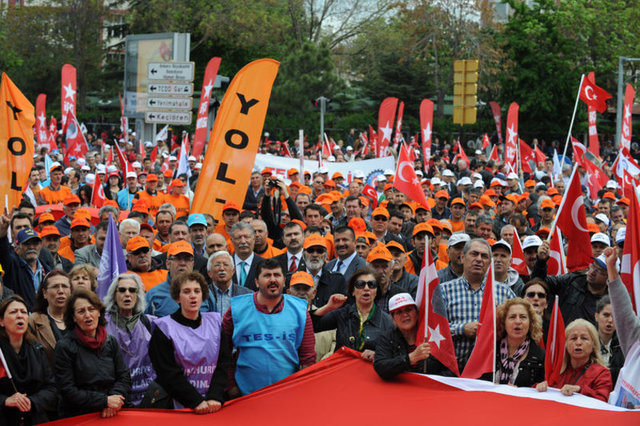 Meydandaki mitinge CHP'li Levent Gök, Aylin Nazlıkaya, Emine Ülker Tarhan da katıldı. Müzik aralarında sahneye çıkan tertip komite başkanları ise konuşmalarında, birlik ve dayanışma mesajı verdi. Taksim'e yürümek için mücadele gösterenlere selam gönderen bir tertip komitesi başkanı, özgürsüzlüğe, kuralsız çalışmalara, çocuk işçiliğine, kadın cinayetlerine, hırsızlığa, yolsuzluğa 'Hayır' demek için, ormanların, kentlerin yağmalanması için meydanlarda olduklarını söyledi.