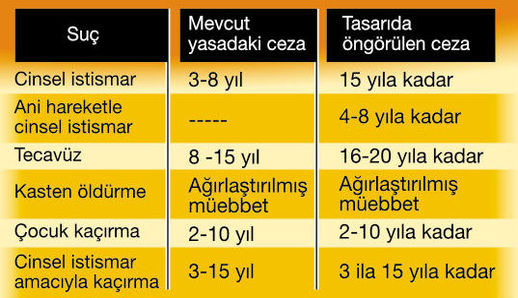 CEZA Hukukçusu, Avukat Uygar Çöltekin, “Çocuklara karşı işlenen suçlarda, yapılacak yasal değişiklikle koşullu salıverilme süresinin artırılması, cinsel istismardan mahkûm olanların cezalarının infazının yüksek güvenlikli ceza infaz kurumlarında çektirilmesi söz konusu olabilir. Elbette ki ceza hukuku sadece cezalandırma amacında değildir ve mutlak surette bir ıslah gayesi gütmektedir. Diğer yandan toplumda adalete olan inancın kaybolması durumunda bireylerin suç işleyen kişileri kendilerinin cezalandırmak istemesi gibi durumların ortaya çıkması muhtemeldir. Bu nedenle söz konusu suçların infazının ağırlaştırılması gerekir kanaatindeyim. Meclis’e sunulan yeni tasarı, hem temel ceza maddelerinde, hem de cezaların infazında eskiye oranla neredeyse iki katına çıkaran ağırlaştırılmış hükümler içeriyor. Bu gelişme oldukça sevindirici. Tasarı, ayrıca çocuklara yönelik bir suçtan dolayı ağırlaştırılmış müebbet hapis cezası alanların 30 yıl yerine 39 yıl, müebbet hapis cezası alanların 24 yıl yerine 33 yıl ve diğer hapis cezası alanların da aldıkları cezanın 2/3’ü yerine 3/4’ünün infaz edilmesi durumunda koşullu salıverilmesini öngörüyor” şeklinde yorumda bulunurken, yasadaki ceza hükümleri ve yeni tasarıda öngörülen ceza miktarlarını şöyle özetledi: