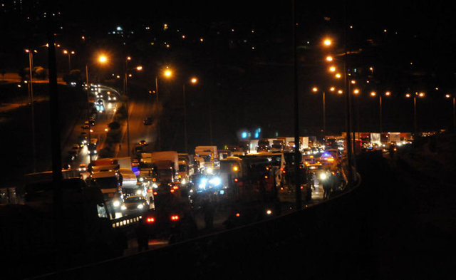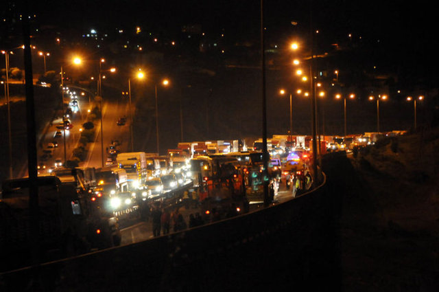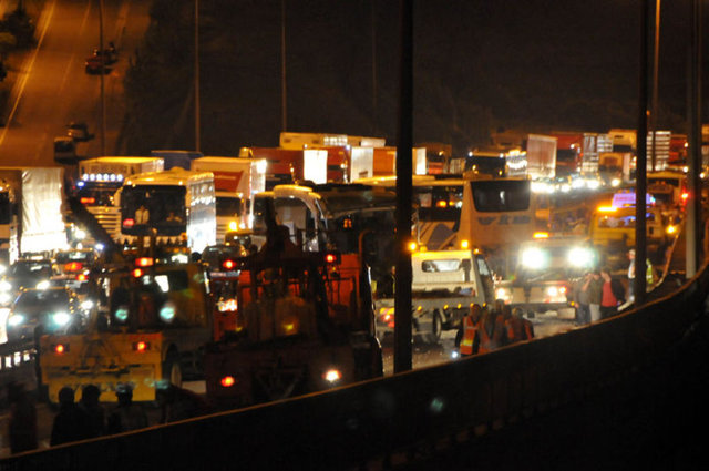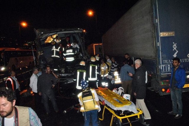 Kocaeli'nin İzmit ilçesi TEM Otoyolu'nda 2 yolcu otobüsü, 16 TIR, 6 otomobilin aralarında bulunduğu 24 aracın karıştığı zincirleme trafik kazasında 5'i ağır 44 kişi yaralandı. 32 yaralı Kocaeli'ndeki, 12 Adapazarı'ndaki hastanelere sevk edildi. Kaza nedeniyle 3 saat 30 dakika trafiğe kapalı kalan Tem otoyolu Ankara istikametinde trafik tek şeritten kontrollü olarak verilmeye başlandı.