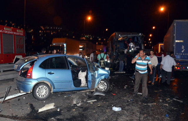 Kaza, saat 21.00 sıralarında TEM Otoyolu'nun Bekirdere rampası Ankara istikametinde meydana geldi. Kazaya, içerisinde kamyon, TIR, otobüs ve otomobilin bulunduğu 24 araç karıştı. Kazanın bildirilmesi üzerine olay yerine çok sayıda sağlık, itfaiye ve polis ekibi sevk edildi. Kaza sonrası yaklaşık 1 kilometelik bir araç enkazı oluşurken, 5'si ağır 44 kişi yaralandı.
