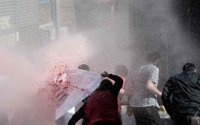Bunun üzerine polisler, TOMA'dan tazyikli su ve biber gazı sıkarak eylemcilere müdahale etti.