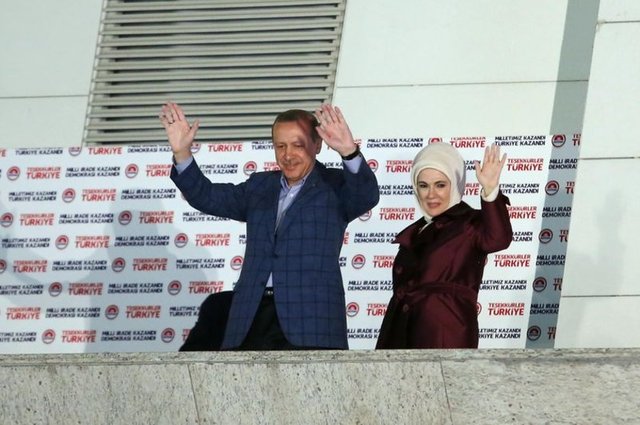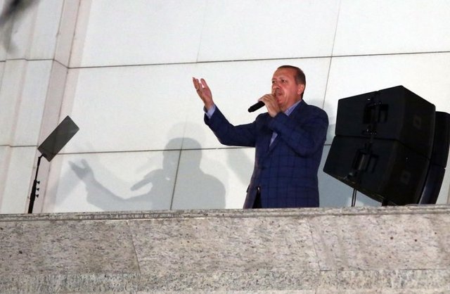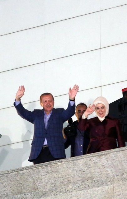 Resmi olmayan sonuçlara göre cumhurbaşkanlığı seçimini kazanan Recep Tayyip Erdoğan, her seçim sonrası geleneksel hale gelen AK Parti Genel Merkezi balkonunda partililere hitap etti.