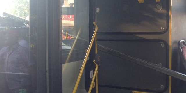 Demir çubuklar, belediye otobüsünün arka camından girdi