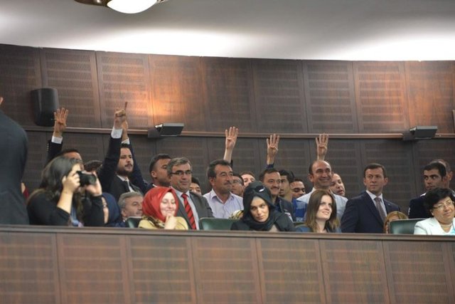 Türkiye uluslararası barışın da öncü ülkesidir. Siyaset bilimciler son 10-15 gün içinde yaşananları tahlil ettiklerinde , daha sonraları bu sıralarda oturan vekiller bu günleri tekerrür ettiklerinde Ak Parti’nin sergilediği tutumu örnek olarak tarihe geçireceklerdir. 10 Ağustos’ta tarihi devrim yaşadık. Milletimiz kendi cumhurbaşkanını seçti. Bir takım oyunlar, kumpaslar içinden geçerek başarıya milletimiz imza attı. Bir başka ilk daha yaşandı. İlk kez aynı kadro içinden iki cumhurbaşkanı birbirlerine bu makamı büyük katılımla devrettiler. İlk defa aynı kadro içinden iki cumhurbaşkanı görev teslimi yaptı. Biz Sayın Gül’e demokrasi mücadelesi nedeniyle teşekkür ediyoruz. 2007’de cumhurbaşkanlığı seçiminde neler yaşandığını biliyoruz.