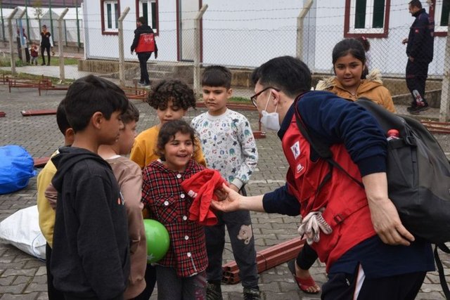 Güney Kore'den 20 kişilik ekip, destek amaçlı deprem bölgesi Osmaniye'ye geldi. Kentte afetzedeler için çadır kurulumu yapıp, Osmaniye Belediyesi ekiplerince yapılan yemek dağıtım işine destek veren Koreli yardımseverler ayrıca temin ettikleri bir TIR dolusu yardım paketini de kentteki depremzedelere ulaştırdı