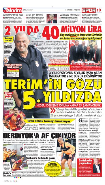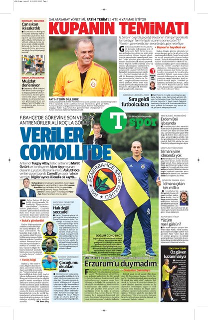 Günün spor manşetleri (18 Ekim 2018)