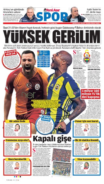 Günün spor manşetleri (2 Kasım 2018)