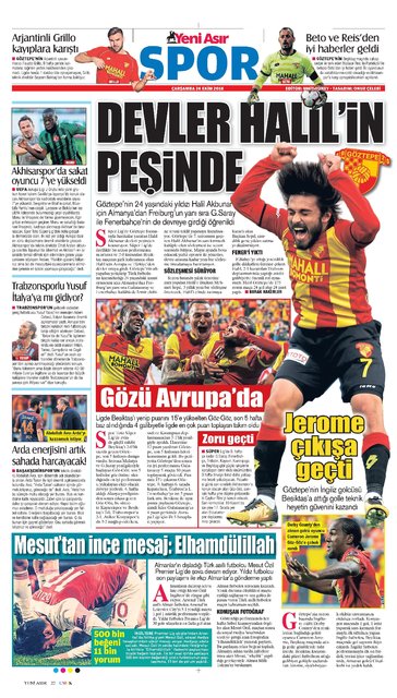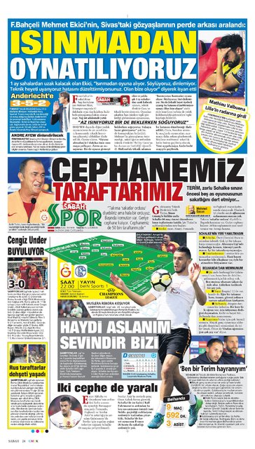 Günün spor manşetleri (24 Ekim 2018)