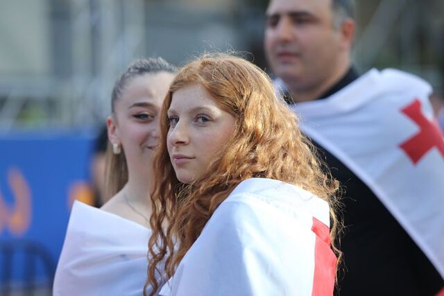Gürcistan'ın başkenti Tiflis'te, iktidardaki Gürcü Hayali Partisinin parlamentoya sunduğu "yabancı etkinin şeffaflığı" konulu yasa tasarısını desteklemek için on binlerce kişi sokağa çıktı.