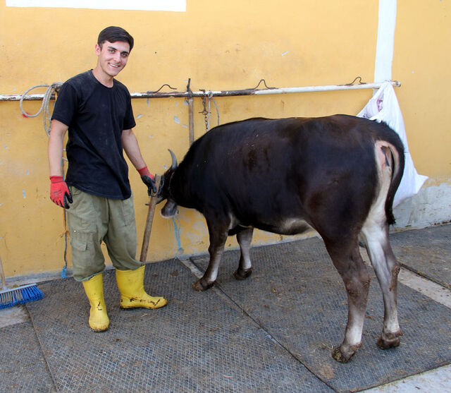 Kırıkkale'nin Bahşılı ilçesinde ailesiyle besicilik yapan 20 yaşındaki Hamit Keleş, büyükbaş hayvanları için keman çalıp şarkı söylüyor