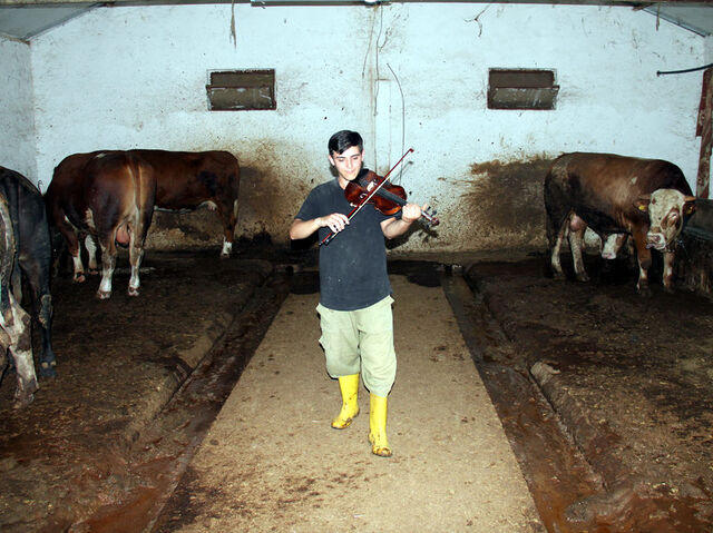 Güzel sanatlar lisesi mezunu besici hayvanlarına keman çalıyor
