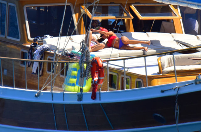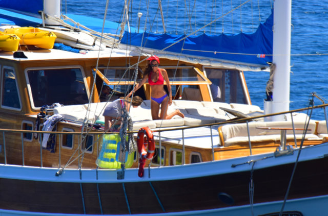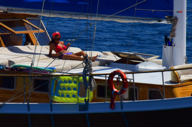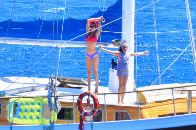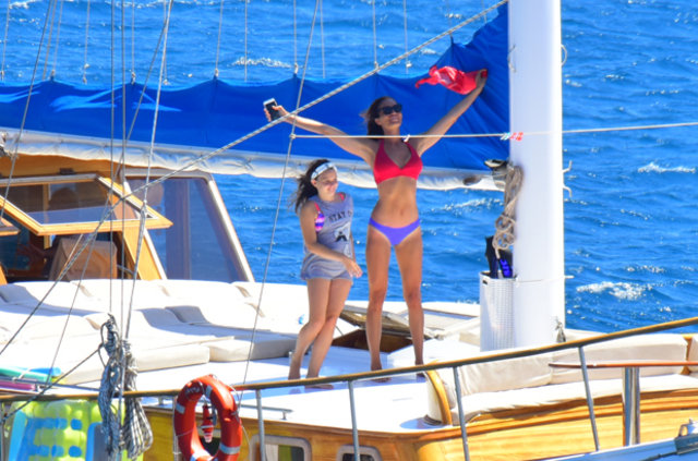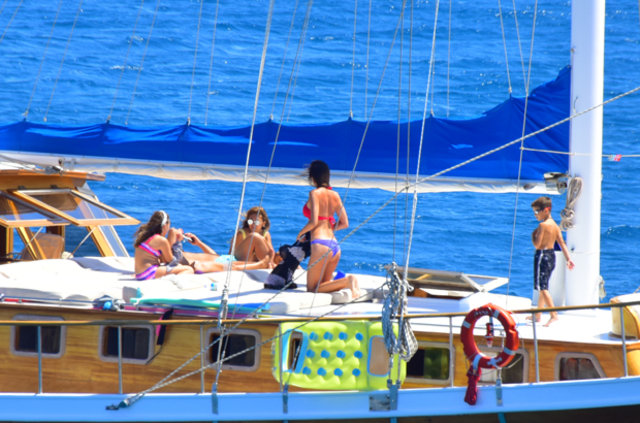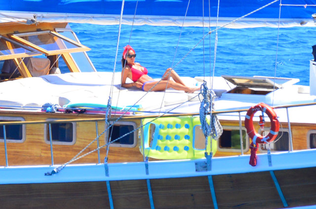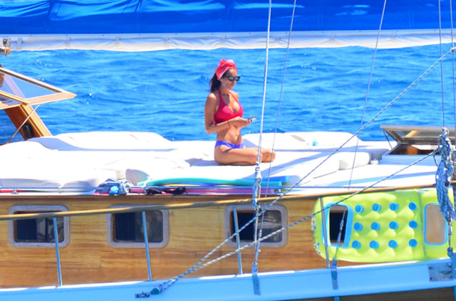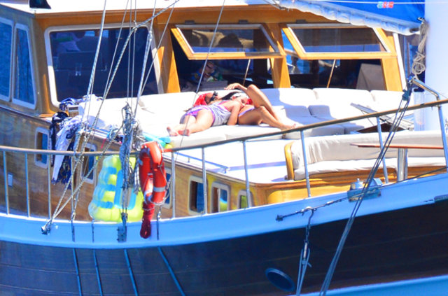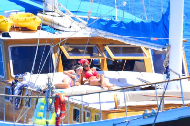 Habertürk'ten Hakan Yağcı'nın haberine göre, İstanbul’da bir süre kalan çift kiraladıkları gulet tekne ile mavi tura çıktı.