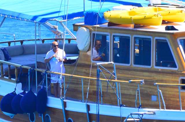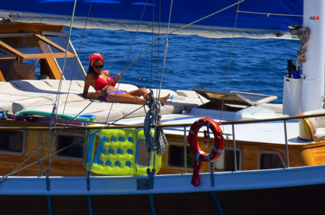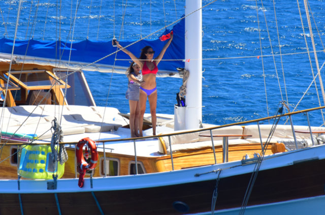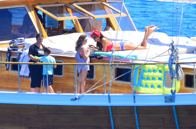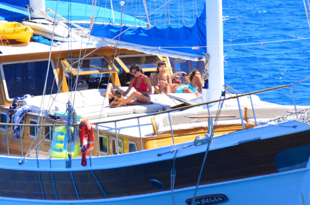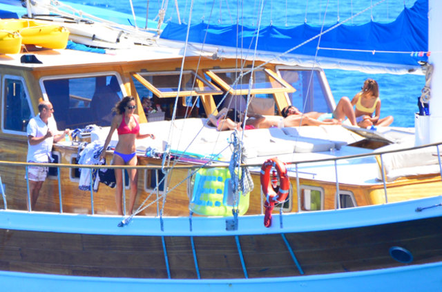 Güzide Duran eşi Adnan Aksoy ve çocuklarıyla tatil için kiraladıkları tekne ile mavi tura çıktı