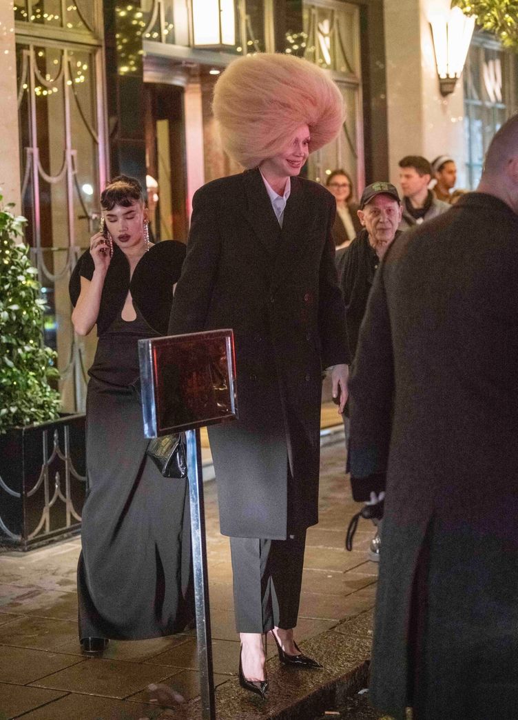 Christie, peruğunun da etkisiyle 2 metreye ulaşan boyuyla, Londra'da kaldığı otelden onu etkinliğe götürecek taksiye sığmaya çalışırken fotoğraflandı.