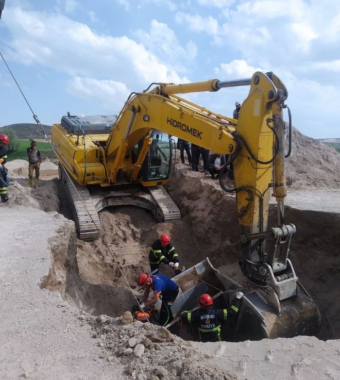 Nevşehir'de iş makinesi operatörü Adem Kocaman, hafriyat çalışması sırasında göçük altıda kaldı. Ekiplerin toprakla dolan kabinden çıkardıkları Kocaman'ın hayatını kaybettiği belirlendi