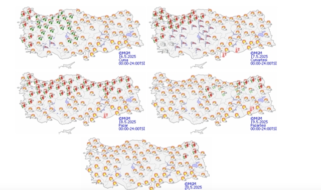 Meteoroloji Genel Müdürlüğü tarafından yapılan tahminlere göre: Ülkemiz genelinin parçalı yer yer çok bulutlu, Marmara, Ege (Muğla ve Denizli haric), Batı Karadeniz (Sinop haric), İç Anadolu’nun kuzeybatısı ile Antalya, Isparta ve Kırıkkale çevrelerinin aralıklı sağanak ve gök gürültülü sağanak yağışlı geçeceği tahmin ediliyor. Yağışların, Kırklareli, Edirne ve Tekirdağ çevrelerinde yerel kuvvetli olması bekleniyor. Rüzgarın; Marmara, Ege, Batı Akdeniz, İç Anadolu’nun batısında güney ve güneybatı yönlerden kuvvetli (50-70 km/sa) Kıyı Ege ile Marmara’nın batısında kuvvetli fırtına (60-90 km/sa) şeklinde eseceği tahmin ediliyor. Marmara’nın güneyi, İç Anadolu’nun batısı ve Ege'de toz taşınımı bekleniyor.