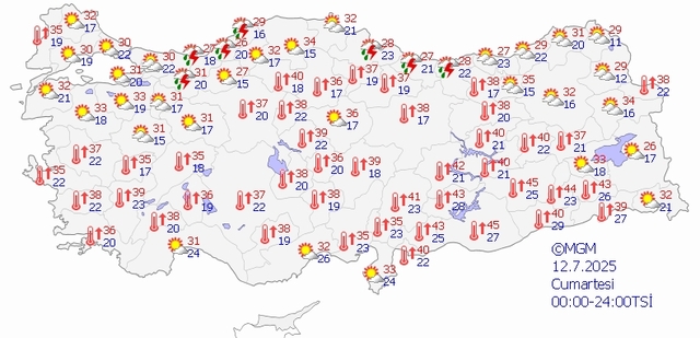 Hafta sonunun gelişiyle birlikte Türkiye genelindeki hava durumu tahminleri gündemi meşgul etmeye başladı. Hafta sonu için plan yapmayı düşünenler, Meteoroloji Genel Müdürlüğü tarafından yayımlanan hava durumu raporunu mercek altına aldı. Peki, "Hafta sonu hava nasıl olacak?" İşte MGM ile 12-13 Temmuz Meteoroloji ile İstanbul, Ankara, İzmir hava durumu tahminleri...