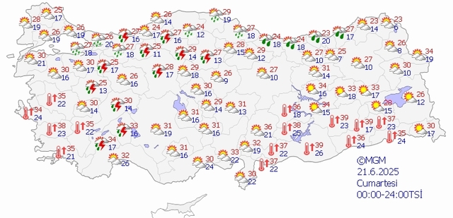 Hafta sonunun gelişiyle birlikte, Meteoroloji Genel Müdürlüğü tarafından yayımlanan hava durumu tahminleri gündemi meşgul etmeye başladı. Yurt genelinde mevsim normalleri üzerinde seyreden hava sıcaklıklarının, pazar gününden itibaren kuzey kesimlerde yağışla birlikte azalacağı ve mevsim normalleri altına düşeceği tahmin ediliyor. Peki, "Hafta sonu hava nasıl olacak?" İşte 21-22 Haziran Meteoroloji ile İstanbul, Ankara, İzmir hava durumu tahminleri...