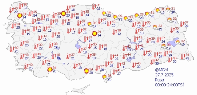 Temmuz ayında son haftaya girilirken, hafta sonu hava durumu tahminleri Meteoroloji Genel Müdürlüğü tarafından yayımlandı. Mevsim normallerinin üzerinde seyreden sıcaklıklık Şırnak, Silopi'de termometre gölgede 50.0°C'ye ulaşırken Antalya'da 46,1 dereceyle 95 yılın sıcaklık rekoru kırıldı. Peki, "Hafta sonu hava nasıl olacak?" İşte 26-27 Temmuz Meteoroloji ile İstanbul, Ankara, İzmir hava durumu raporu...