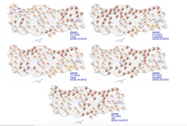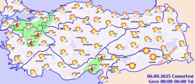 Hafta sonu hava durumu raporu yayınlandı. Meteoroloji'den yapılan son hava durumu tahminlerine göre; Ege'nin iç kesimleri, Adana ve Mersin çevreleri ile Doğu Karadeniz ve Doğu Anadolu'nun kuzeyi gök gürültülü sağanak yağmurlu olacak. Hafta sonu plan yapacak olan vatandaşlar il il hava durumu hava durumunu merak ediyor. İşte, 6-7 Eylül hava durumu