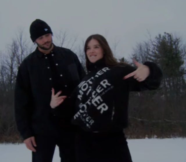 Paylaşımda eşiyle birlikte objektif karşısına geçen Hailee Steinfeld’in üzerinde 'anne' yazılı peluş montu ve belirginleşen karnı dikkatlerden kaçmadı.