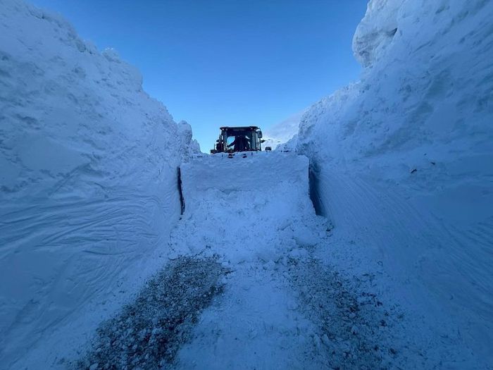 Kardan oluşan tüneller ve 5 metreyi bulan kar kalınlığı nedeniyle zaman zaman zor anlar yaşayan ekipler, kepçe ile açamadıkları yolda ekskavatör de kullanıyor.
