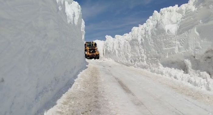 Hakkari'de 5 metreyi aşan karda yol açma çalışması