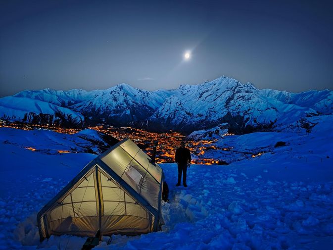 Gıyasettin Tatlı ve Adnan Raufoğlu ile doğa severler Ersin Kaya, Bedirhan Tatlı ve Serhat Özbek’in yer aldığı grup, baharın başlamasına rağmen etkisini sürdüren yoğun kar örtüsü altında kamp kurarak geceyi doğanın kalbinde geçirdi.