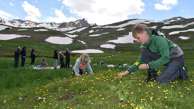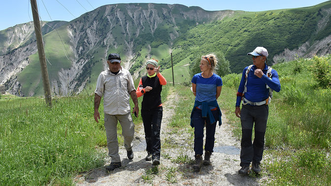 Aralarında Almanya'dan gelen 4 kişilik ailenin de bulunduğu bir grup doğasever, yeşilin tüm tonlarının, rengarenk çiçeklerin ve kar kütlelerinin bir arada görülebildiği 3 bin 300 rakımlı Berçelan Yaylası'na çıktı.