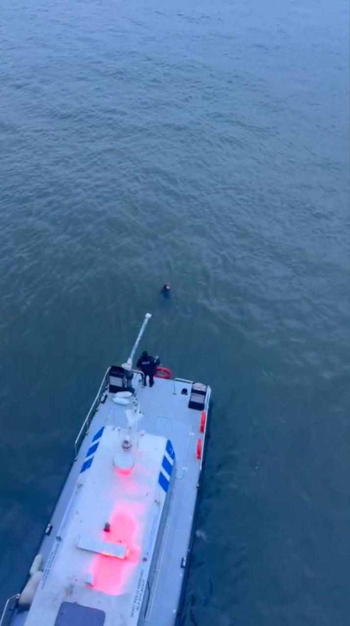 İstanbul'da Haliç Metro Köprüsü'nden denize düşen bir kişiyi Deniz Polisi kurtardı. O anlar saniye saniye kameraya yansıdı