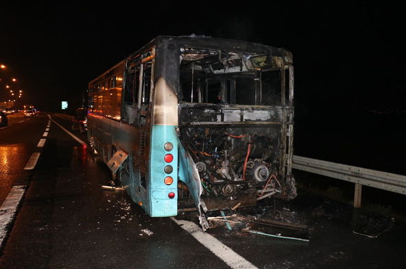 Sürücü otobüsü emniyet şeridinde durdurarak yolcularını tahliye etti. Olay yerine çok sayıda itfaiye ekipleri sevk edildi. Kısa sürede olay yerine gelen itfaiye ekipleri, çıkan yangını kontrol altına aldı. Otobüs kullanılamaz hale gelirken yangının çıkış nedenine ilişkin incelemesi sürüyor.