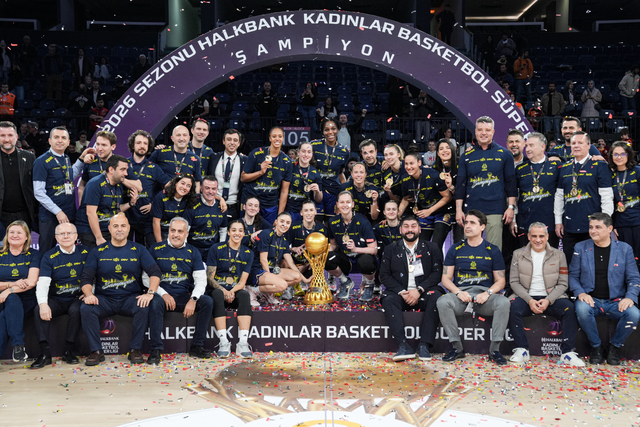 Halkbank Kadınlar Basketbol Süper Ligi play-off final serisi 3. maçında Galatasaray Çağdaş Faktoring'i 87-76 yenerek 2025-2026 sezonunu namağlup şampiyon tamamlayan Fenerbahçe Opet, kupasını kaldırdı.
