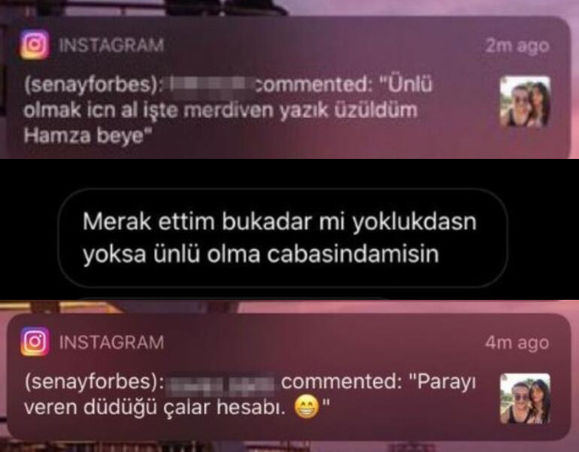 Şenay Forbes ile birliktelik yaşayan Hamza Yazıcı, kendisine gelen çirkin mesajları ifşa etti. Oyuncu, "Umarım sizin de ailelerinize böyle yorumlar yapılır. Bizim canımızı sıktığınız gibi sizin de canınız sıkılır. Beyinleriniz cüce, kalbiniz sakat kalmış. İnandığınız her şey başınıza yıkılır umarım. Sağlıksızca kalın" açıklamasını yaptı