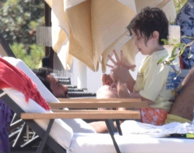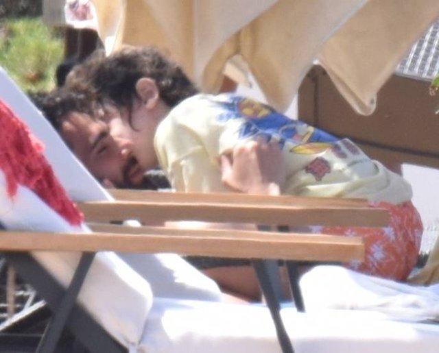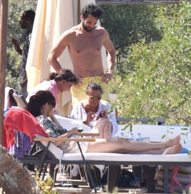 Bir ara hararetli bir telefon görüşmesi gerçekleştiren ünlü oyuncu, daha sonra şezlonga geri dönmüştü.