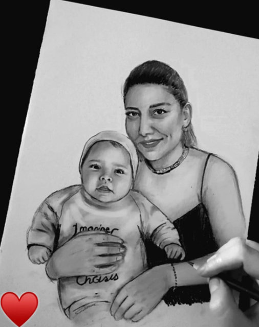 Oyuncu Hande Erçel, yeğeni Aylin Mavi ve onu hiç göremeyen annesi Aylin Erçel'in kara kalem resmini hediye eden takipçisine sosyal medya hesabından teşekkür etti