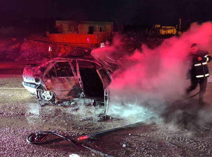 Adıyaman'da hareket halindeyken alev alan otomobil küle döndü. Olayda durumu fark eden sürücü, aracını park ederek itfaiye ekiplerinden yardım istedi