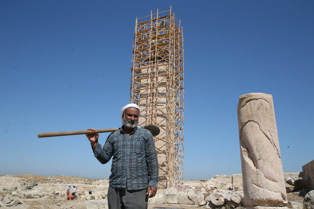 Ören yerinin 13 asırlık sembolü Ulu Cami'nin minaresinin kalıntıları arasında görevini özveriyle sürdüren Alptekin, tarihin gün yüzüne çıkarılması için gayreti ve azmiyle de 80 kişilik kazı ekibinin en kıdemli işçisi olarak çaba gösteriyor.