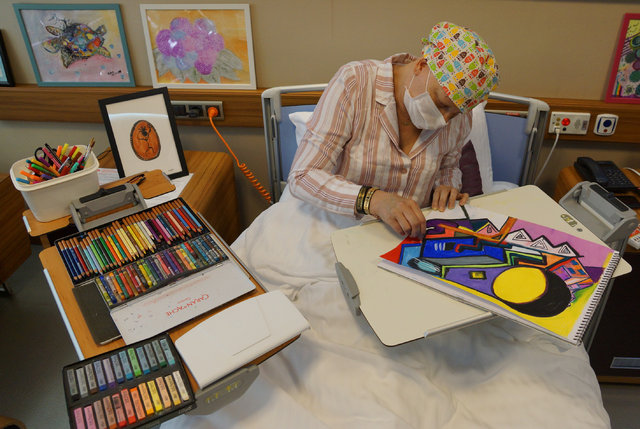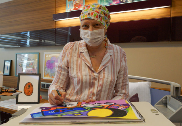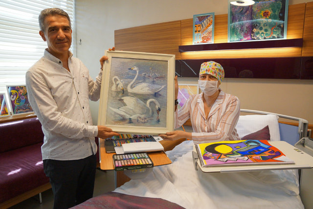 İzmir'de kısa aralıklarla hem lösemi hem de meme kanseri teşhisi konulan 47 yaşındaki öğretmen, hasta odasında yaptığı resimlerle bir yandan yaşama tutunurken diğer yandan da başka hastalara moral oluyor