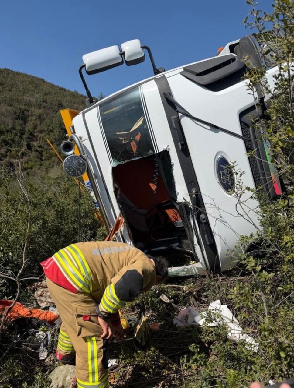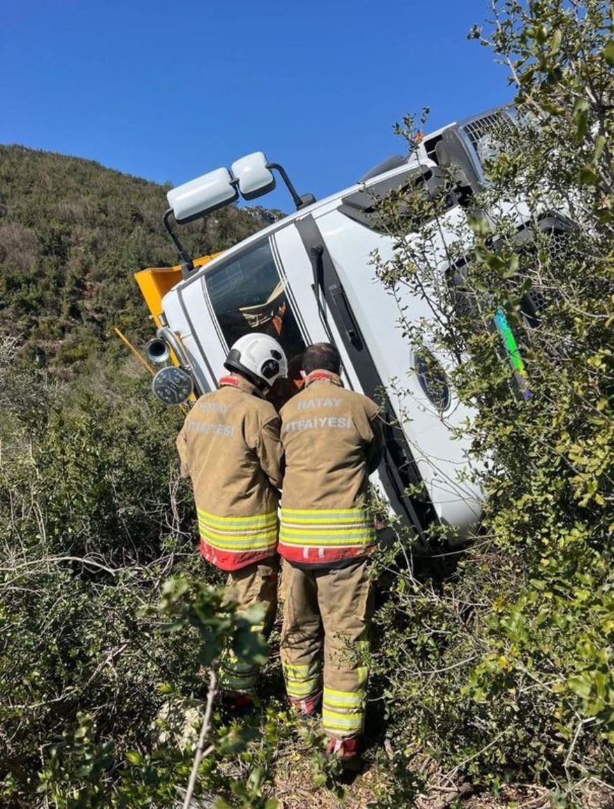 Hatay'da harfiyat kamyonu uçuruma yuvarlandı, sürücü öldü