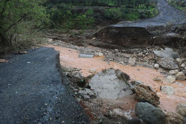 Hatay'da gece saatlerinde etkili olan yağışla birlikte debisi artan derede sel yaşandı, köprü yıkıldı ve yolda da çökme yaşandı.