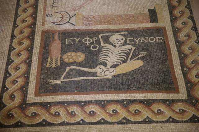 Yunan mitolojisinde önemli yer tutan Narkissos, peri kızı Ekho ve Eros'un tasvir edildiği, milattan sonra 3 ve 4'üncü yüzyıla ait Narkisos ile Antakya ilçesinde 2013'te teleferik inşaatı sırasında antik bir Roma evinin yemek odasından çıkan, üzerinde "neşe, neşelen, mutlu ol, hayata katıl" anlamına gelen yazının yer aldığı İskelet mozaikleri de müzenin en değerli eserleri arasında bulunuyor.