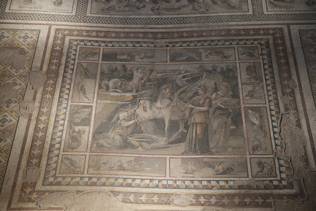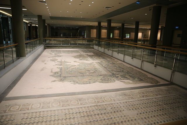 Helenistik, Roma, Bizans, Orta Çağ ve İslamiyet dönemlerine ait eserlerin yer aldığı müze-otel konseptine sahip Necmi Asfuroğlu Arkeoloji Müzesinde de kapladığı yaklaşık 1050 metrekarelik alanla dünyanın en büyük tek parça taban mozaiği olarak anılan eser bulunuyor. Geometrik şekiller ve birbirini tekrar etmeyen figürlerin yer aldığı mozaikteki deformasyon, kentte yaşanan büyük depremlerin izini taşıyor.
